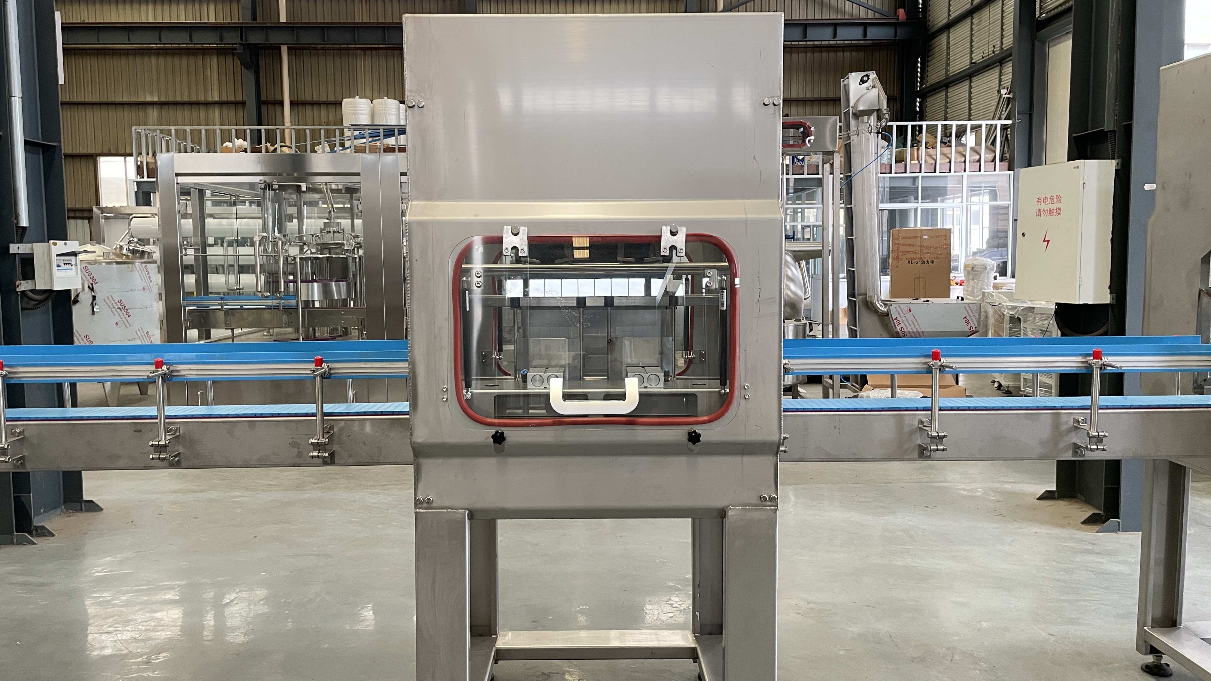 套蓋和壓蓋全過程均在封閉隧道內(nèi)進行,有效地防止純凈水在灌裝過程中可能發(fā)生的二次污染,完全符合衛(wèi)生標(biāo)準(zhǔn)。
