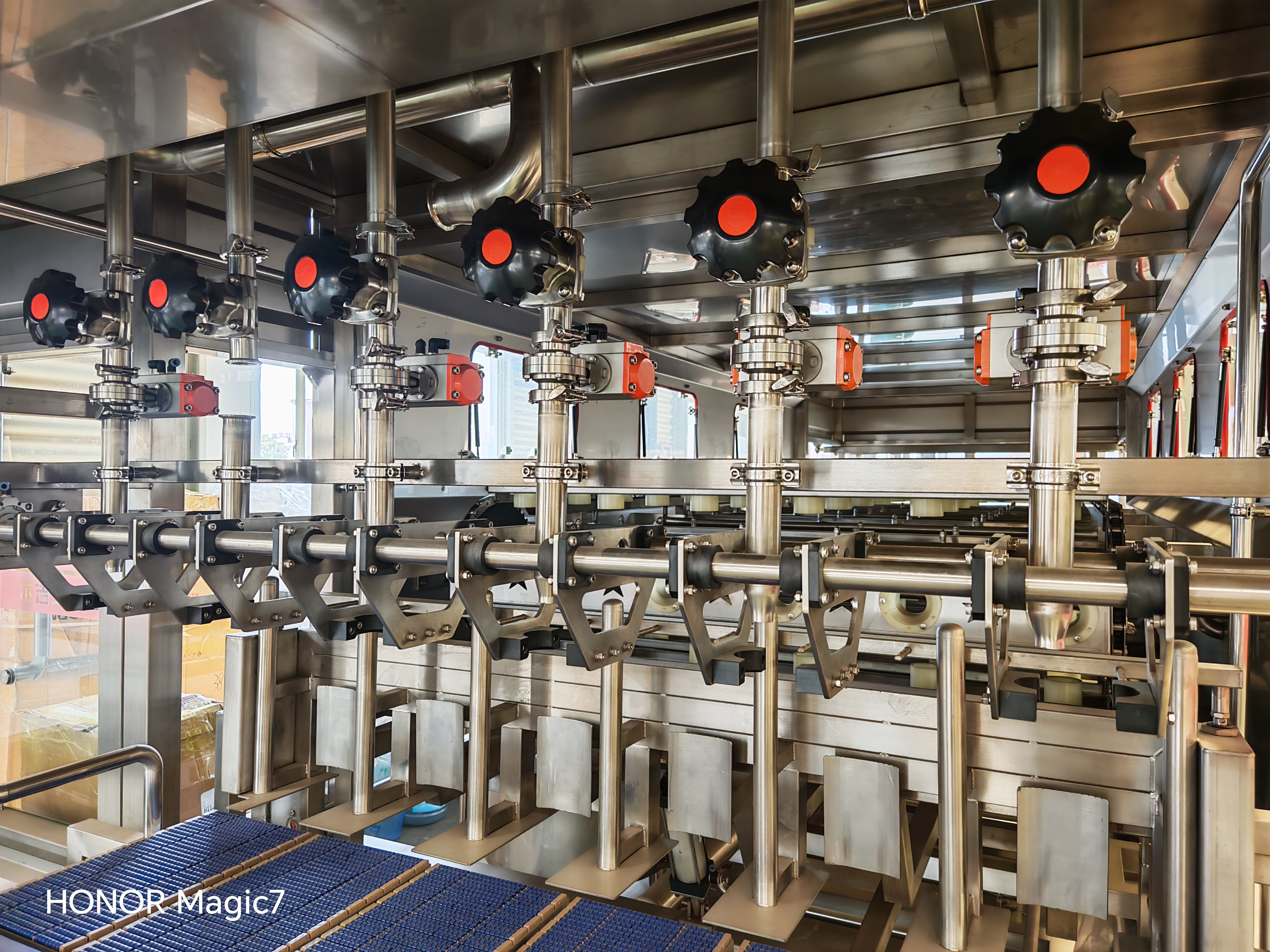 該設(shè)備集自動拔蓋、自動外刷桶、自動上瓶機構(gòu)、自動洗瓶消毒、自動灌裝、自動套蓋、自動壓蓋和燈檢、熱縮膜、提桶套袋、成品送出為一體,使用的原材料符合食品行業(yè)和其他行業(yè)要求。該設(shè)備采用AC380V電源.