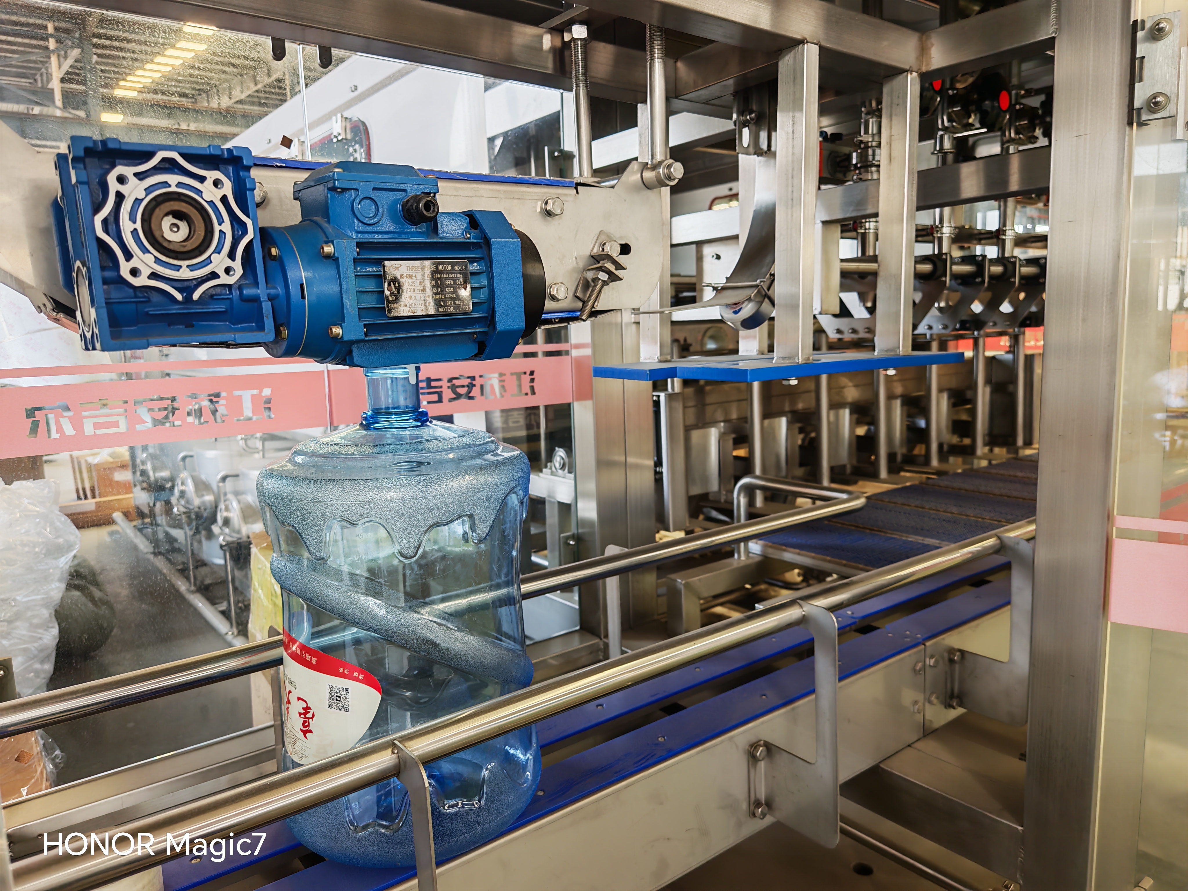 工作步驟:自動拔蓋-自動外刷桶-自動上桶-藥洗-原水內(nèi)外洗-純水內(nèi)洗-灌裝-自動理蓋-壓蓋-自動傳送帶傳出-燈檢-熱縮-成品