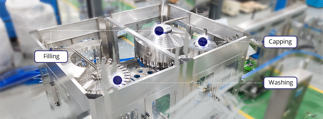 灌裝線可以通過更換少量備件,將天然泉水,純凈水,碳酸水,調(diào)味水注入PET瓶中。 | 灌水線的生產(chǎn)能力通常在1,000-36,000bph,可提供0.25-2.5L PET瓶。 | 自動灌裝機(jī)采用沖洗/灌裝/封蓋三合一技術(shù),PLC控制,觸摸屏,主要由SUS304 / SUS316制成。 |